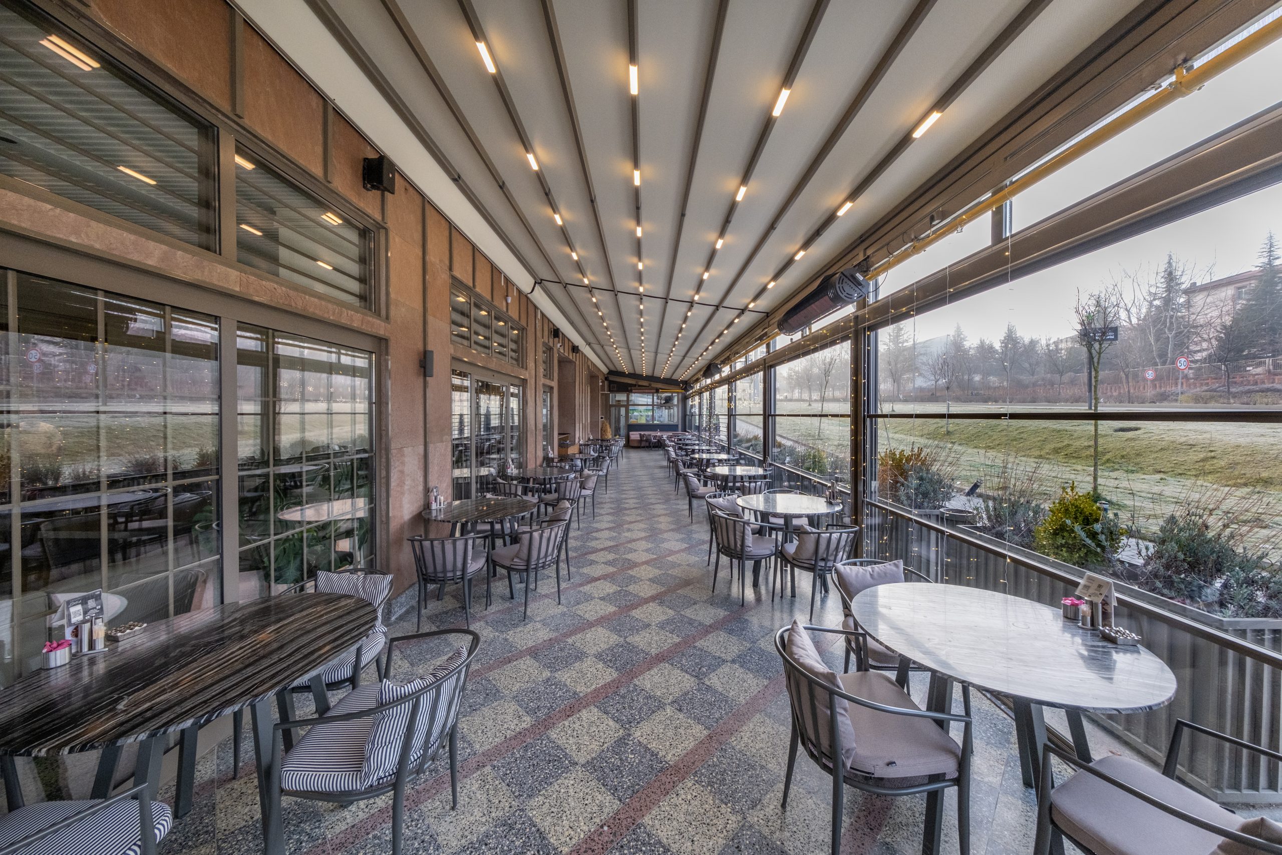 Ein besonderes Highlight ist, dass sich das Lamellendach bei Sturm automatisch öffnet oder schließt und so Komfort und Sicherheit bei unvorhersehbarem Wetter bietet. Mit seinem robusten Design hält es bis zu 350 kg pro Quadratmeter stand und ist dadurch äußerst widerstandsfähig. Ob Sie sich für Aluminium- oder Glaslamellen entscheiden, dieses Dach sorgt sowohl für thermische als auch akustische Isolierung, wodurch Ihr Raum warm und ruhig bleibt.